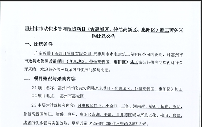 惠州市水電建筑工程有限公司勞務(wù)供應(yīng)商庫擴庫評審結(jié)果公示……
